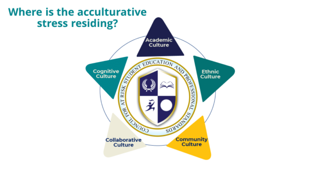 And so here’s just an example, and I’ll take it back to our collaborative example. Let’s say, you’re just throwing students in groups, and you have a student who’s from Mexico. A student from Mexico, if they are familiar with the academic culture, would have very little problems being put in a group randomly because they understand the culture, they understand the academics and that academic culture’s where they’re comfortable, so there’ll be fine. But for a student who has high levels of acculturative stress, what they’re really going to need is some sort of cultural cue that’s valued.